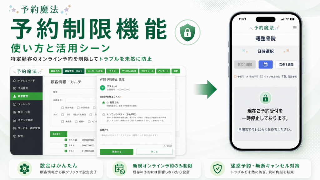 予約魔法「予約制限機能」の使い方と活用ガイド|悪質顧客への対応をステップで解説